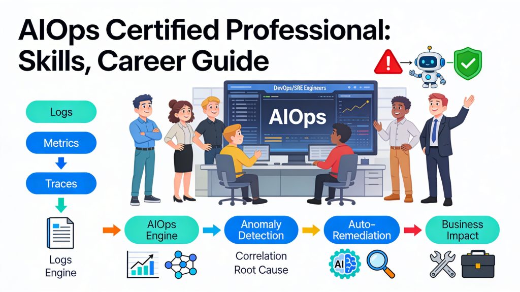 The AiOps Certified Professional (AIOps) certification prepares engineers and managers to work in this new intelligent operations environment. It teaches how to detect anomalies, correlate events, predict failures, and automate incident response using data-driven insights. This guide explains the certification from a practical and career-focused perspective — what you learn, how to prepare, and how it helps in real production environments.